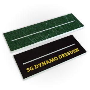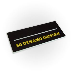 Für den Trophäenschrank, deinen Schreibtisch auf Arbeit oder auf dem Wandregal – deine Dynamo Player Card wird zu deiner Trophäe. Mit dem passenden Standfuß für deine individuelle Player Card stellst du sie überall dorthin, wo sie auch gut gesehen werden kann. Die Standfüße gibt es passend in den Größen A3, A4 und A5. Du kannst zwischen dem SG Dynamo Dresden und einem Spielfeld Design wählen. Für optimalen Stand werden sie aus 10mm starken PVC-Material gefertigt.